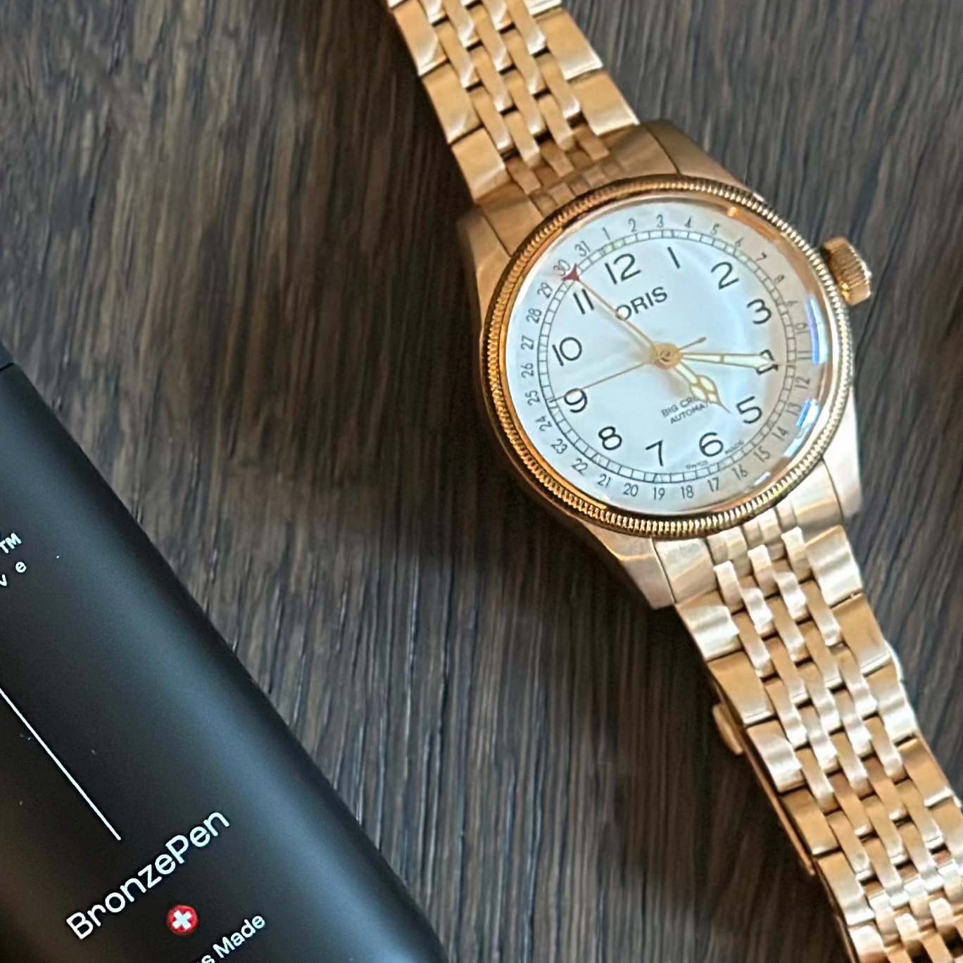 Darüber hinaus empfehlen wir, bei der Verwendung des BronzePen Handschuhe zu tragen, um zu verhindern, dass natürliche Hautfette die Oberfläche Ihrer Uhr beeinträchtigen.